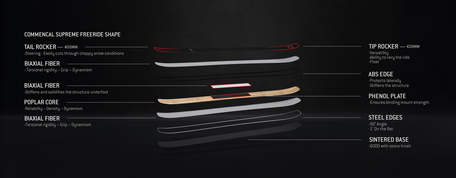 Our pure big mountain ski, wide underfoot, double rocker for optimal floatation. The SUPREME was crafted with a firm belief – to offer a high-performance freeride ski with pivot capability that makes riding in all conditions a breeze.
