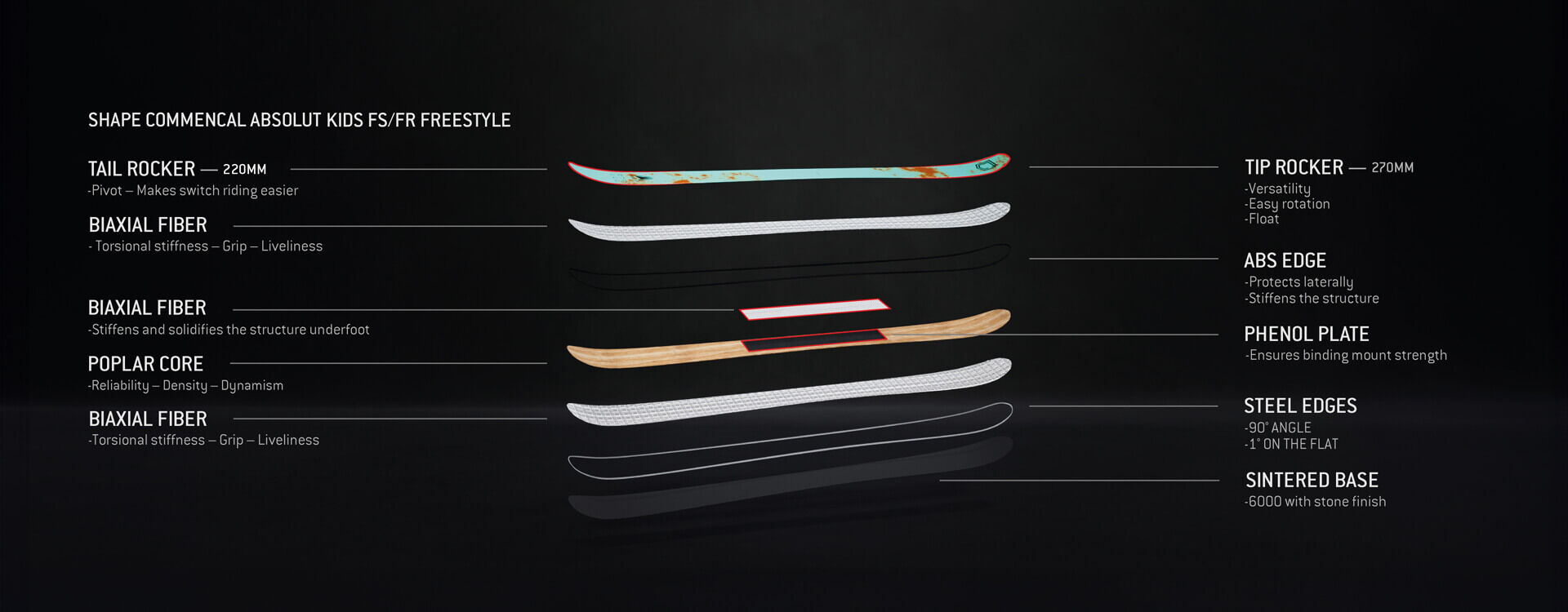 This kids’ version largely mirrors the characteristics of our ABSOLUT adult’s ski. The structure is slightly more flexible to allow young riders to express themselves more easily. Highly versatile, it’s the ideal model to get started in freeskiing.