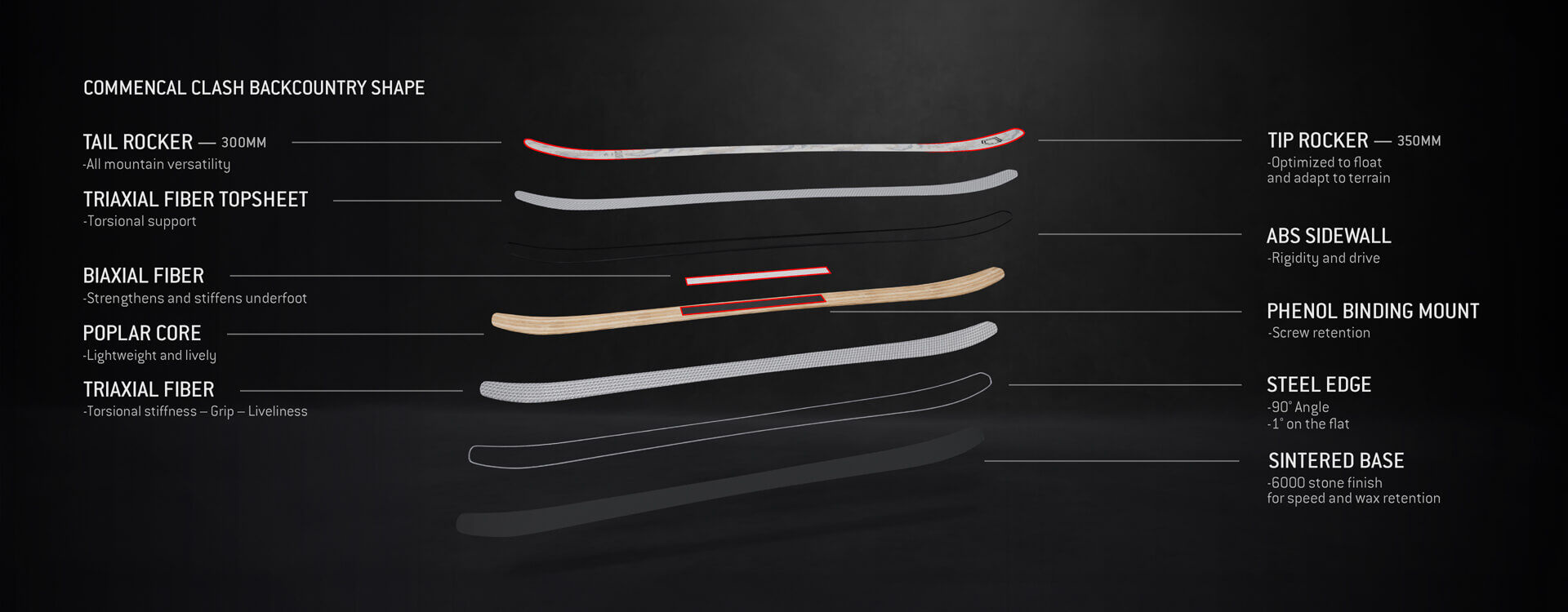 New shape, new structure – the CLASH is our take on a freeride and backcountry ski. It blends a short turn radius with agility and responsiveness plus pop for jumps. An incredibly versatile ski.