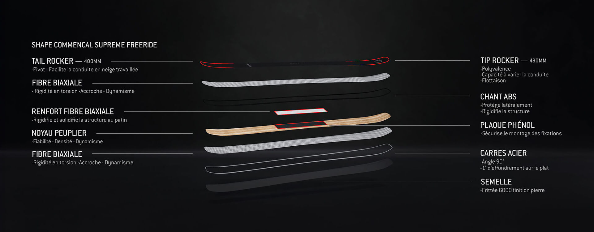 Notre pur ski de Big Mountain, large sous le pied, double rocker pour une portance optimale. Le SUPREME a été conçu avec une conviction ferme, celle de proposer un ski de Freeride performant avec une capacité de pivot qui facilite la conduite toute neige.