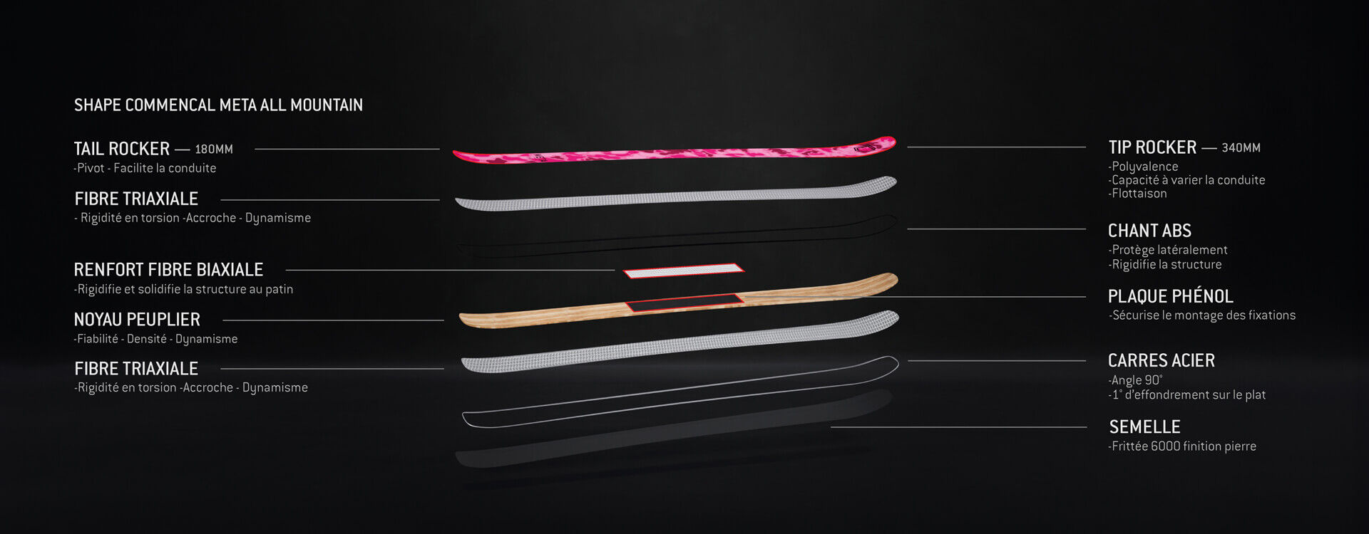 Le parallèle avec nos mountain bikes est assez facile à faire. Le META se destine à la pratique All Mountain. Cette nouvelle version gagne en vivacité en fin de courbe et en accroche neige dure. Un ski de tous les jours, bon dans toutes les conditions.