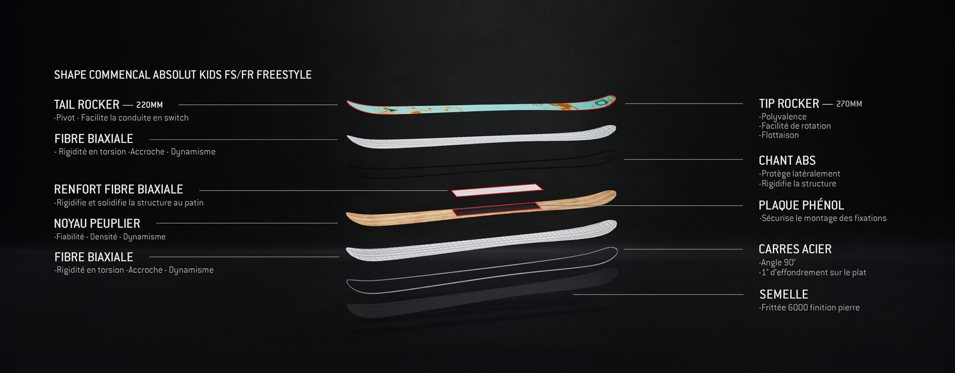 Cette version pour kids reprend en grande partie les caractéristiques de l’ABSOLUT. La structure est un peu plus souple afin de permettre aux jeunes riders de s’exprimer plus facilement. Ultra polyvalent, c’est le modèle idéal pour mettre un pied dans le freeski.