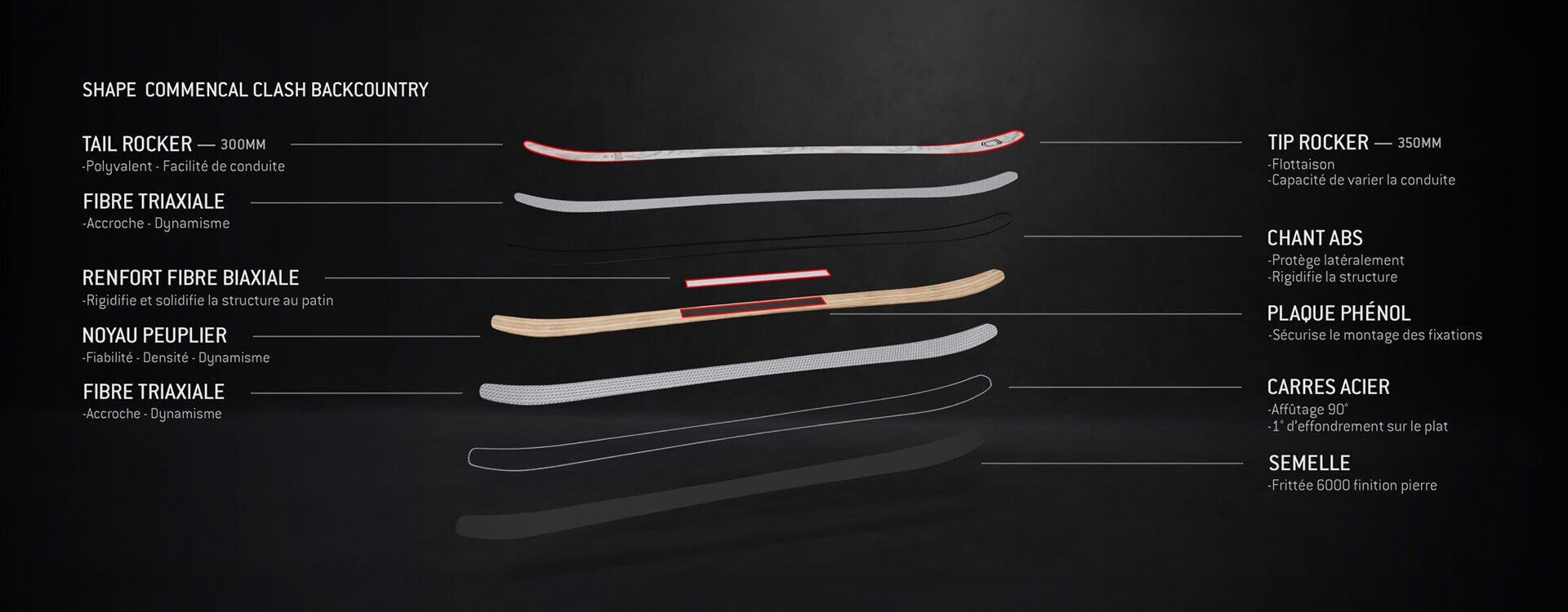 Nouveau shape, nouvelle structure, le CLASH est un Freeride/Backcountry tel que nous le concevons. Un combo de rayon court, d’agilité, de pop sur les sauts et de réactivité. Un ski ultra complet et d’une rare polyvalence.